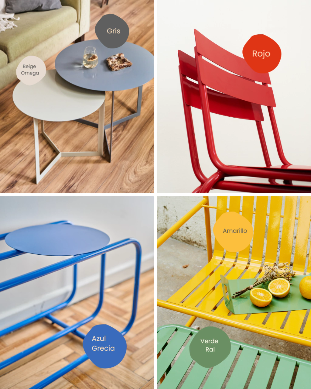 Terminación: Pintadas al horno 210ºC logrando una terminación mucho más resistente al uso y al exterior.